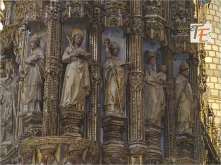 Pinturas al fresco ejecutadas por los pintores florentinos Gerardo Starnina y Nicolás de Antonio sobre 1390, para la capilla de San Blas, por orden del arzobispo Pedro Tenorio. Estas joyas estuvieron a punto de desaparecer, siendo restauradas a comienzos del tercer milenio. Por sus halos dorados se refieren a todos los santos y santas de la iglesia católica. Entre otros podemos ver a María Magdalena, así como a reyes, papas, obispos, profetas y a parte de las once mil vírgenes.