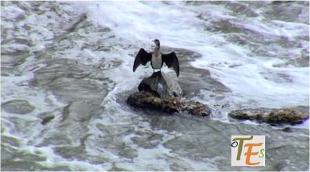 Una garza real observa con su largo cuello, algún movimiento en el agua, para poder atrapar algún pez o anfibio en el río Tajo a su paso por Toledo. Aunque al venir este tan contaminado por el detritus de los alrededores de la capital de España, también de Madrid y de Aranjuez, pasando por esta ciudad casi muerto, tendrá que tener mucha paciencia dicha ave durante varias horas, para poder atrapar algo.