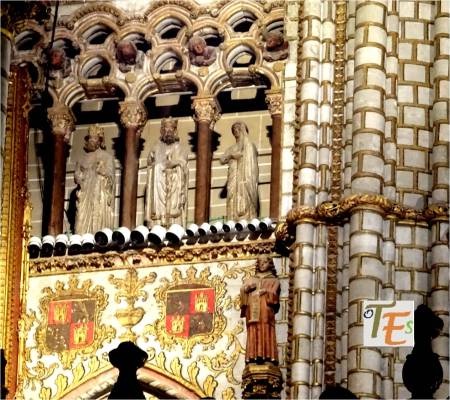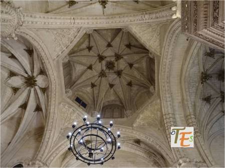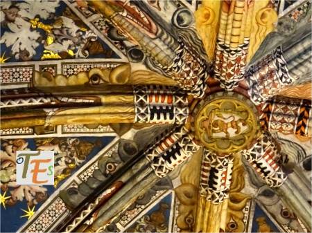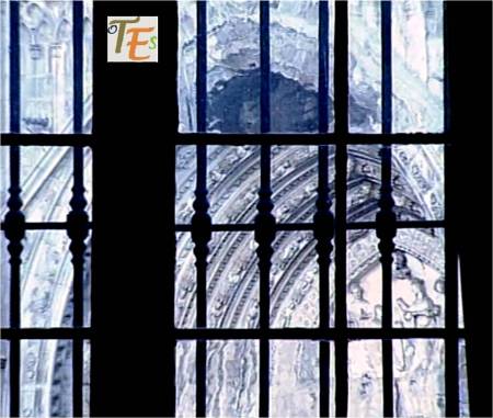 Bellísimo artesonado en madera, con infinidad de mocárabes, al estilo de los cielos construidos en las salas principales de la Alhambra de Granada, para deleite de sus emires. Este que aquí vemos, sirve para embellecer la techumbre de la Sala de la Custodia, en el primer cuerpo de la torre norte o campanario de la Catedral de Toledo.