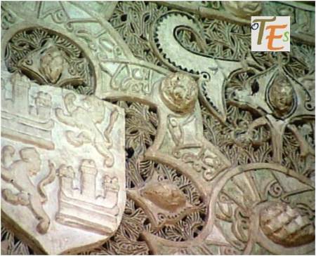 En el más puro estilo mudéjar y con una riqueza plena en dicho estilo, vemos aquí un suntuoso arco de medio punto angrelado con alfiz, en uno de los palacios usados por la nobleza toledana del siglo XIV. Fue tallado en estuco, indudablemente por albañiles toledanos de religión musulmana.