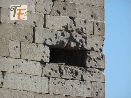 Estos son algunos de los arcos del patio del Alcázar, los cuales quedaron en pie, tras la terrible guerra civil española, de los unos contra los otros y viceversa. En ellos y en sus enjutas, podemos ver aún después de ochenta y muchos años, los impactos de las balas que eran disparadas desde el desaparecido Cerro del Macho. Como ser humano, pienso que estas huellas no tienen nada de glorioso, pero si son un signo de muerte.