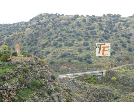 Desde lejos observamos las diferentes arquitecturas de la ciudad de Toledo. Por un lado el gótico isabelino de San Juan de los Reyes, el renacentista de la Puerta del Cambrón y las murallas mudéjares de las Vistillas de San Agustín. Por encima el Parador de Turismo y el Hospital Geriátrico, dando paso a la comarca de la Sisla Menor.