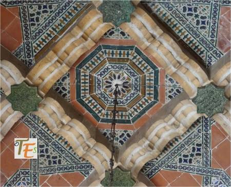 Detalle del yamur en cerámica vidriada, que ostenta el centro del tejado de la mezquita del Cristo de la Luz. Este sirve de amuleto apotropaico para defender dicha sala de cualquier mal, además de embellecerla. Se repuso tras su restauración en el año 2010.