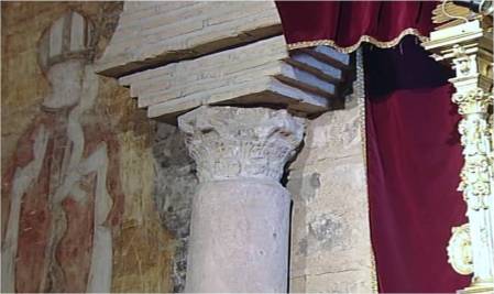Columnas y capiteles romanos, reutilizados por los visigodos, que sirvieron para sustentar los arcos de herradura de una mezquita, frente a los arcos de medio punto de un templo cristiano. Esta mezcolanza de estilos, se dan en la iglesia del Salvador, en Toledo.