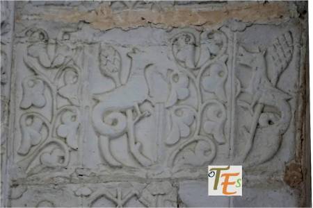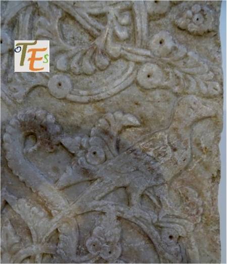 Sobrerelieve tallado en una pieza de mármol, perteneciente a un palacio musulmán del siglo XI. En él vemos los típicos tallos con sus ramos, flores y frutos, mientras entre ellos se sustenta un ave, única muestra figurativa que permitía el Islam. Se encuentra en el Museo Taller del Moro.