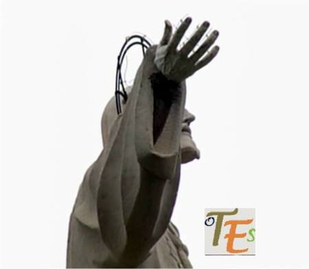 El parecido entre el detalle de la pintura al fresco de la Sala Cisneriana, donde vemos los pies de Cristo sobre la bola del mundo de Juan de Borgoña en siglo XVI, para la representación de la gloria, es algo parecida a la fotografía del mundo real, hecha en el siglo XX por los astronautas, desde el espacio próximo.