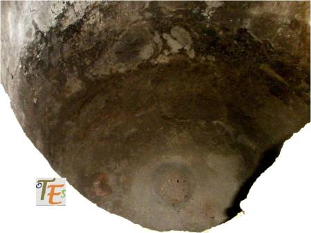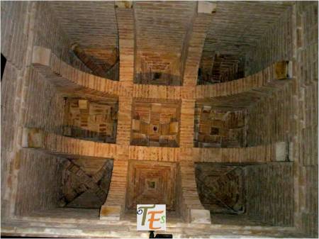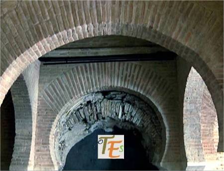 Desde el interior de un aljibe toledano, podemos observar su estructura geométrica y la fecha de cuando fue construido, más la firma del alarife que le llevó a cabo, en este caso Pedro Morales.