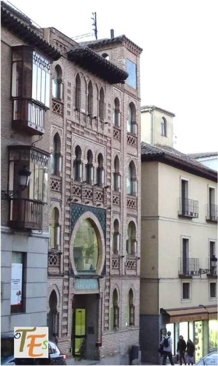 Edificio neorenacentista por su modernidad, en la Plaza de Zocodover, haciendo esquina con la entrada de la Calle del Comercio, vulgarmente Calle Ancha. En este se encontraba la Sastrería Arcal.