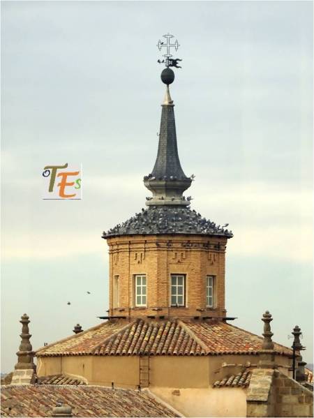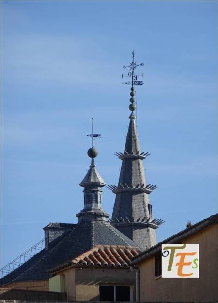 Desde el centro del tejado del Ayuntamiento de Toledo, determinado por el pináculo que sustenta su bola terráquea, veleta y cruz, observamos el imponente crucero de la iglesia mozárabe de San Marcos y parte de su espadaña. Ahora es un templo desacralizado, el cual es usado como archivo municipal y como museo para diferentes exposiciones.