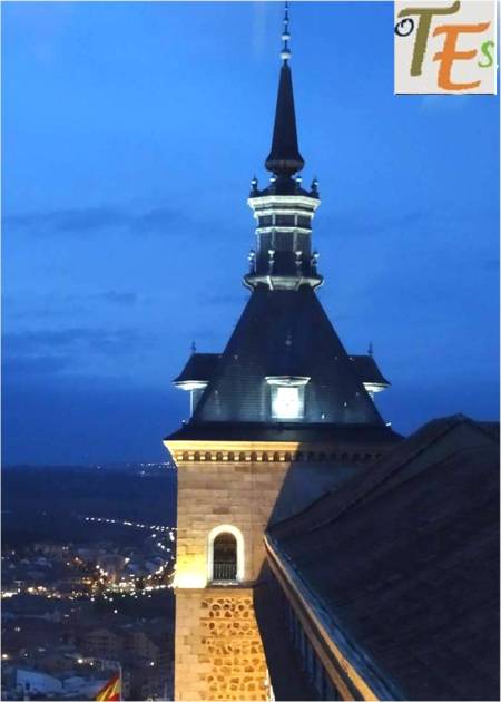 Torreón noroccidental del Alcázar de Toledo. En tiempos de Isabel II del siglo XIX, se estableció en el mismo una estación de telegrafía óptica, para mensajes codificados entre el centro y el sur peninsular. Tras su destrucción en la guerra civil, fue reconstruido entre 1940 a 1957, por la Dirección General de Regiones Desvastadas.