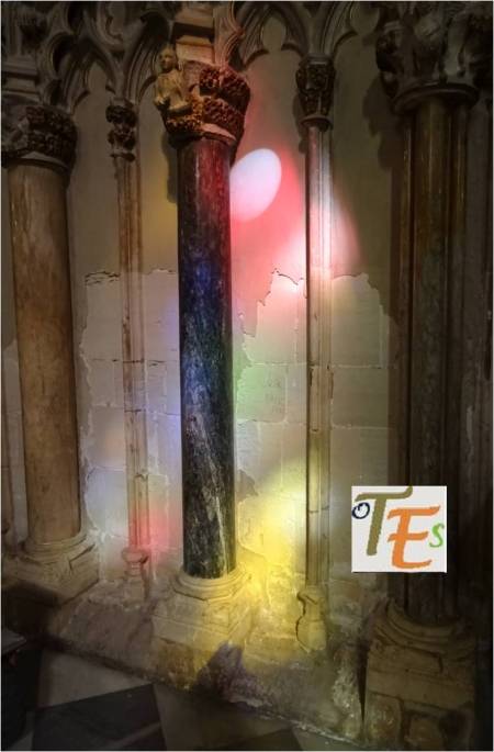 Diferentes colores que embellecen de forma silenciosa, el pavimento de la catedral toledana. Reflejo proyectado desde los vitrales que componen su triforio. La sensación que se tiene al observarlos es de extrañeza. Aunque en ellos se refleja el movimiento del templo con el planeta, haciendo de él un ente vivo.
