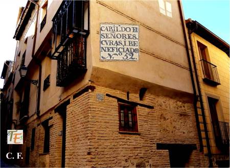 Esta es la calle de las Bulas Viejas, las cuales se imprimían en ella. Además de su gran estrechez, en su conformación se observan algunos recodos. Debemos este perfil en ella, por formar parte de la Judería Grande de Toledoht, por lo que aún se pueden ver algunos de sus adarves si tenemos suerte, al ser ya pasillos vecinales. Son muy abundantes los subterráneos que la conforman, precisamente para proporcionar la necesaria intimidad de los hebreos toledanos.