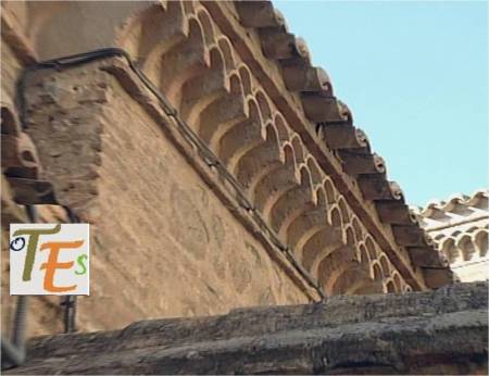Este es un alero, que adorna el exterior de uno de los monumentos toledanos. Está compuesto por pechos de paloma convexos en saliente, donde descansan tejas que forman arcos con los mismos, con otras tejas entrecruzadas por encima. Viendo un sencillo pero bello estilo de trabajar, en el estilo mudéjar.