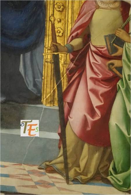 Cuando Juan de Borgoña pintó la Sala Cisneriana en la catedral de Toledo, este se inspiró para ello en el paisaje, ambiente y oficios que conformaban entonces a la ciudad. Por tal motivo plasmó en una de sus secuencias, concretamente en la de la imposición de la casulla a San Ildefonso, a Santa Bárbara sustentando un de sus atributos, como es una gran espada, usando como modelo el mandoble del entonces emperador Carlos I. Por dicho gesto, este nos dejó reflejado la fama de las espadas toledanas.