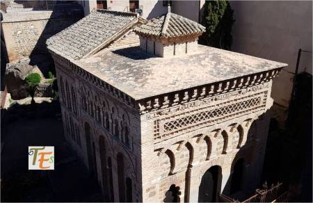 Desde las alturas, observamos el cubo que forma la milenaria mezquita de Ibn Hadidi, de Valmardón o del Cristo de la luz, del año 999 y formando conjunto con ella, una iglesia o ermita construida en el siglo XII, que por su sincretismo nos legó el primer arte de estilo mudéjar de Hispania entonces, expandiéndose a toda la península ibérica.