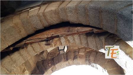 Arcos superiores de la puerta del Cristo de la Luz o de Valmardón, que viene del árabe Bab-al-Mardúm. Hoy día aún se puede ver entre el hueco de sus dos arcos interiores, el rastrillo medieval en madera, que al bajar cerraba la puerta. Hasta hace unos años, se veían los largos clavos que la unían al suelo.