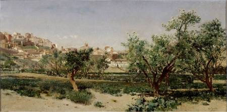 Dejamos aquí uno de los bellos cuadros pintados por Aureliano de Beruete, que nos enseña la bella panorámica de una de esas huertas toledanas, al lado del río Tajo, con sus árboles frutales y en el lado derecho, según se mira, la pequeña rueda de una noria. Dicha obra se encuentra hoy día en el Museo del Prado, en Madrid.