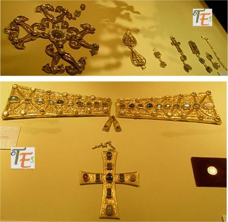 En dicho centro de interpretación, se hallan también varias copias de dichas coronas, fabricadas en el año 2010, con el fin de ser mejor observadas las más importantes y alguna de sus sujeciones, como son las de los reyes Suintila y otras, así como cadenas, letras y el descrito “alfa”, también cadenas, piedras semipreciosas, fíbulas y otros objetos valiosos como los brazos de una cruz procesional, con un valor histórico muy importante así como de ejecución, pero de poco valor dinerario, por no ser las originales.