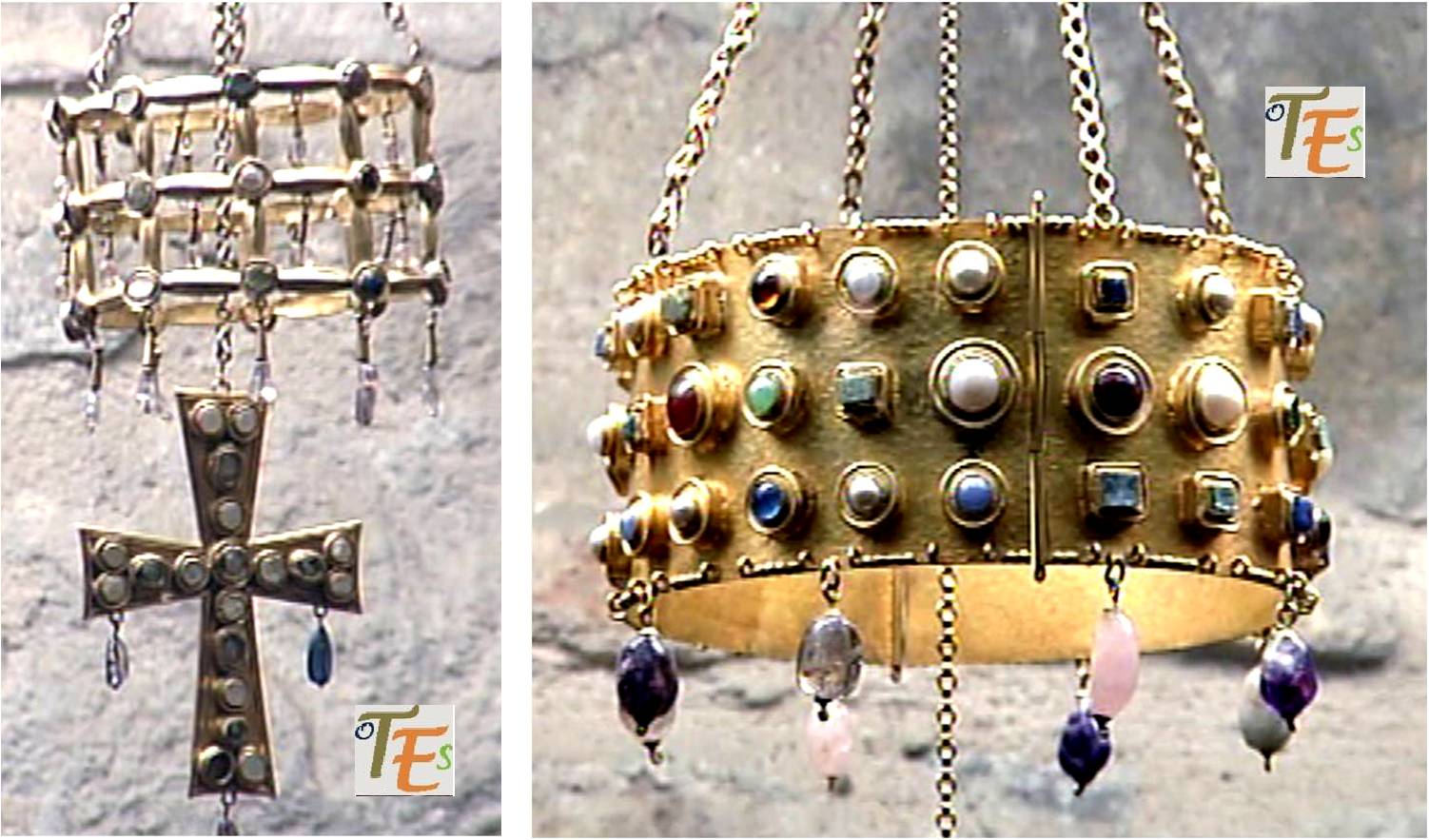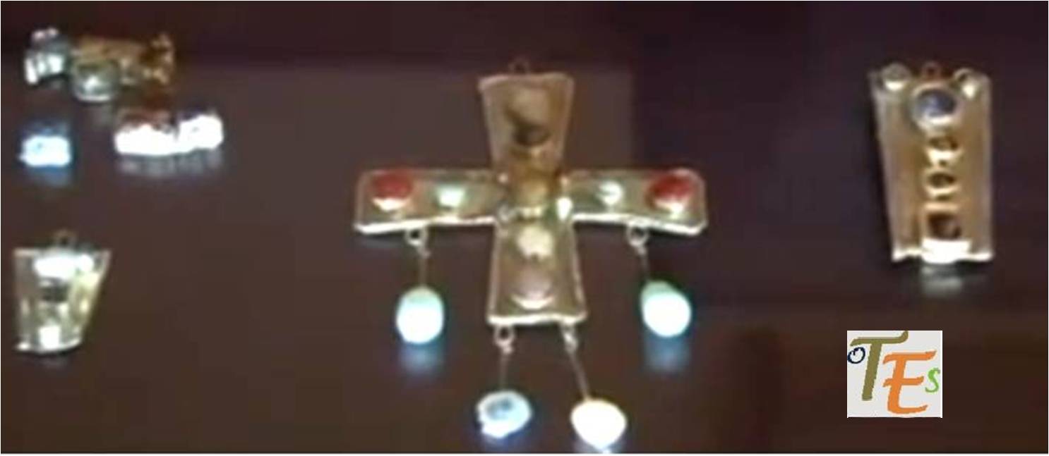 En un magnífico por bello escenario de ambiente medieval, con unas naves sustentadas por arcos califales, repletas de extraordinarias pinturas románicas toledanas, se encuentran cantidad de piezas con tallas visigodas y varios ajuares hallado en distintos lugares de la provincia, aunque lo más llamativo son varias copias de las coronas votivas de los reyes godos aparecidas en la “Fuente de Guarrazar”. Fueron ejecutas estas en la década de los años 60 del anterior siglo, para enriquecer a este museo y entre otros restos, aquí se halla la copia de la desaparecida corona del rey Suintila, con una ejecución de gran calidad, demostrando la destreza de los orfebres visigodos.